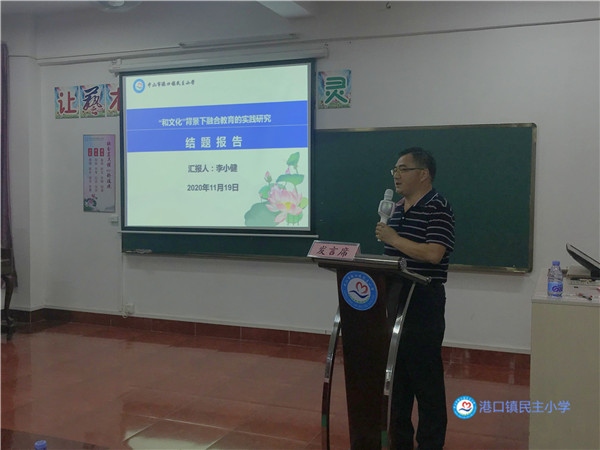 南粵初冬似春顏,三角梅開紅綠展。2020年11月19日下午,中山市港口鎮民主小學舉行了市級課題《“和”文化背景下融合教育實踐研究》結題鑒定會。出席本次會議的驗收專家組組長由中山市中小學德育研究與指導中心副主任、石岐區文體教育局德育專干潘志堅擔任,專家組成員有中山市特殊教育指導中心林開儀副主任和楊萍老師、港口鎮教育和體育事務中心特殊教育專干吳昌育。課題過程管理人港口鎮教育和體育事務中心德育專干廖志堅和課題組全體成員及各兄弟學校的老師代表全程參加了此次課題結題鑒定會。