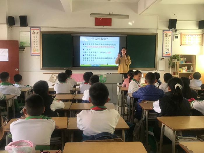 班會課上,班主任利用課件、視頻、圖片等方式,從水痘疾病的特征、傳播途徑和預防對策這三個方面詳細講解了相關預防知識,總結了傳染病的一般預防措施,強調要做到每天開窗通風、保持室內空氣新鮮,勤洗手、做好個人衛生清潔,合理參加體育鍛煉、不亂丟垃圾、保持環境衛生干凈整潔。老師同時提醒學生如有不適及時到正規醫療機構就診,在校學生如患上水痘需要立即停學,等身上皰疹結痂脫落后,憑醫院出具的返校證明才能回學校。