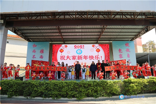 活力四射的律動操《向快樂出發》將現場的氣氛推向了高潮,全校師生齊律動,跳出新年新氣象。師生合作傾情演繹的《新年送祝福》,深情的祝福送出了民小一家人的相親相愛,滿滿的儀式感帶領全體師生提前體驗了一把現場跨年的喜悅和興奮。