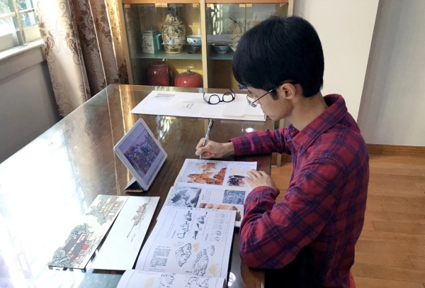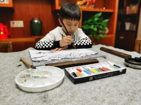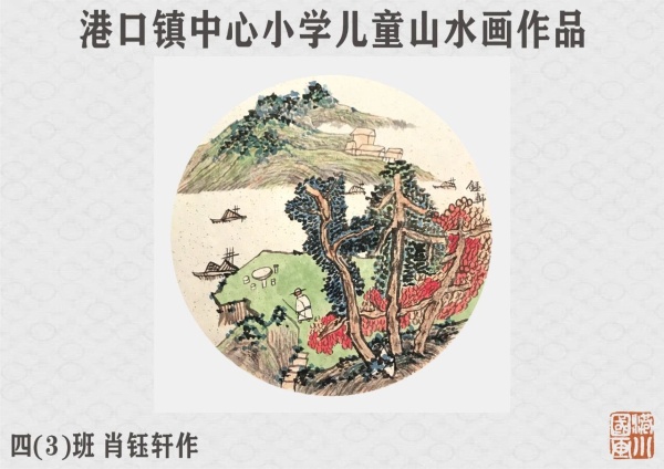 此外,在連續四周的美術線上教學中,郭老師還推出了《春曉詩意圖》《只在此山中》等兒童山水畫題材美術課程,均取源于小學經典的唐詩。系列的特色國畫課受到了廣大學生和家長的積極參與,誕生了一批特色鮮明、文藝而童真的山水畫作品。