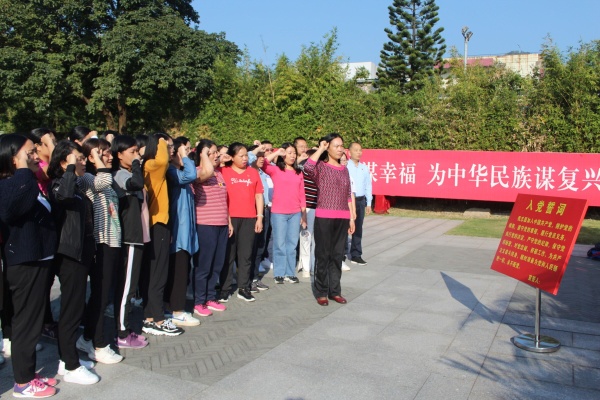 活動的第一站,黨員們來到中山紅色教育基地——楊殷故居。參觀故居前,港口鎮(zhèn)中心小學(xué)黨支部書記章小蘭同志帶領(lǐng)全體黨員在故居前重溫入黨誓詞,堅定入黨初心。隨后,懷著對革命先烈的崇敬之情參觀故居。黨員們通過一份份珍貴的歷史資料和照片,深刻感受到楊殷烈士不惜用自己的生命捍衛(wèi)真理,不畏犧牲為黨奉獻(xiàn),為實現(xiàn)共產(chǎn)主義事業(yè)奮斗的一生,再次堅定各位黨員為人民謀幸福的初心,為民族謀復(fù)興的使命。