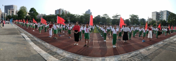 上午,伴隨著雄壯豪邁的國(guó)歌聲,鮮艷的五星紅旗冉冉升起,全體師生向國(guó)旗敬禮,活動(dòng)正式開(kāi)始。林穎老師作國(guó)旗下的講話(huà),教育引導(dǎo)少先隊(duì)員們愛(ài)自己、愛(ài)學(xué)校、愛(ài)祖國(guó)。林穎老師告訴隊(duì)員們,紅領(lǐng)巾是少先隊(duì)員的標(biāo)志,我們應(yīng)該要正確佩戴好紅領(lǐng)巾,愛(ài)護(hù)好紅領(lǐng)巾。緊接著,大隊(duì)輔導(dǎo)員陳詠詩(shī)老師在全體隊(duì)員中廣泛開(kāi)展少先隊(duì)的禮儀、少先隊(duì)歷史教育。陳老師向全體隊(duì)員介紹了少先隊(duì)組織的標(biāo)志——隊(duì)旗。少先隊(duì)的隊(duì)旗是由五角星和火炬組成的,五角星表示中國(guó)共產(chǎn)黨的領(lǐng)導(dǎo),而火炬象征著勝利。隨后,陳老師讓二至六年級(jí)的少先隊(duì)員們重溫當(dāng)時(shí)入隊(duì)的誓詞。隊(duì)員們高舉起小小的右拳,在大隊(duì)輔導(dǎo)員的領(lǐng)誓下,堅(jiān)定地說(shuō)出入隊(duì)誓詞。最后,全體隊(duì)員們精神飽滿(mǎn),意氣風(fēng)發(fā),以飽滿(mǎn)的熱情高唱《中國(guó)少年先鋒隊(duì)隊(duì)歌》,唱出了對(duì)黨和少先隊(duì)組織的熱愛(ài)。