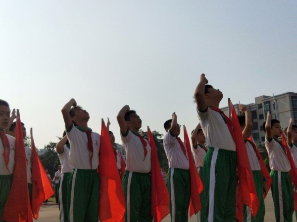 隨著大隊輔導員莊嚴地宣布:“升旗儀式,現在開始,全體肅立!”鼓號隊馬上鼓樂齊鳴,出旗手莊嚴地摯著紅話旗,踏著正步走向升旗臺把國旗交給升旗手,隨著洪亮的國歌響起:“起來!不愿做奴隸的人民……”,鮮艷的五星紅旗冉冉上升。升旗完畢,由港口鎮中心小學書支部書記章小蘭同志為活動致辭,她站在國旗下聲情并茂地詮釋著小學生愛國的各項表現,鼓勵全體學生從身邊的小事做起,認真學習,做好每一件事就是熱愛祖國的最好表現。