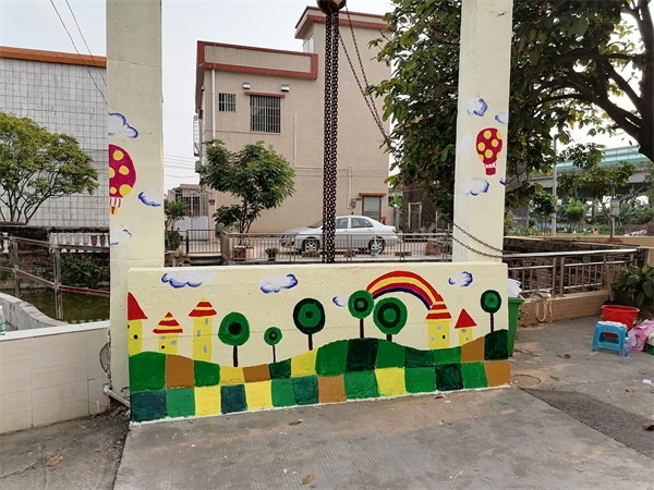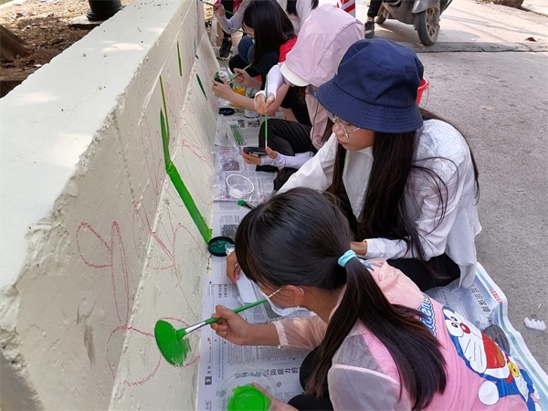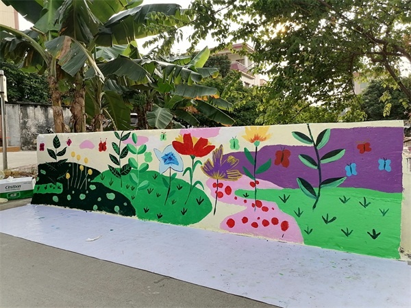 家長和孩子們配合默契,大膽創新,先用粉筆在墻面勾勒出大致輪廓,接著進一步完善細節,然后用彩色的顏料進行上色,一幅幅色彩斑斕、童真童趣的作品便“出爐”了。家長、學生、教師和社區工作人員,通力合作,用自己的方式詮釋著美好有趣的綠色環保世界,美化著社區人居環境,得到居民一致贊賞。