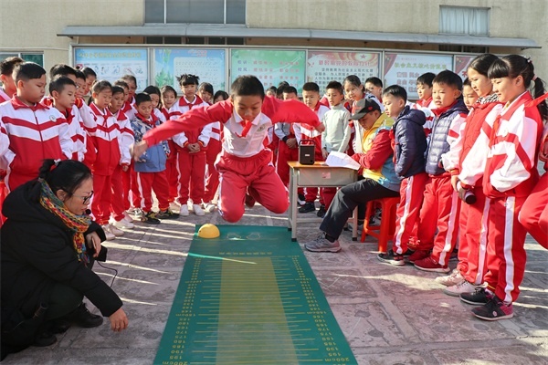 上午,各項賽事激烈有序地進行著。賽場上,運動員們龍騰虎躍,奮力爭先,展示了良好的精神風貌:參加“立定跳遠”的運動員為了得到更好的成績,拼盡全力,面對目標跨出堅定的步伐;進行“仰臥起坐”項目的運動員們,即使疲憊不堪,也依然咬牙堅持;而參加跳繩比賽的運動員們,則用矯健的身影彰顯著他們的活力。賽場外,沒有比賽任務的同學們組成了班級"啦啦隊",加油聲此起彼伏,給賽場增添了緊張激烈的氣氛。