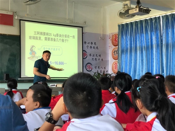 本次研討活動先由大豐小學葉露老師和古鎮鎮曹二小學許琰老師以同課異構的方式各執教一堂課,兩位老師執教的是五年級上冊《用商的近似值解決問題》。葉露老師通過具體生活情境以及辨析練習題激發學生的學習興趣,促進學生對解決問題的思考。在閱讀理解環節中,葉老師通過對信息的分析與理解培養學生的讀題習慣以及對算理的理解。許琰老師則巧妙地利用一個算式串聯起幾道生活實際問題,并且清晰理順二年級和五年級新舊知識之間的關聯,拓寬學生的思維,加深學生對實際問題的理解。