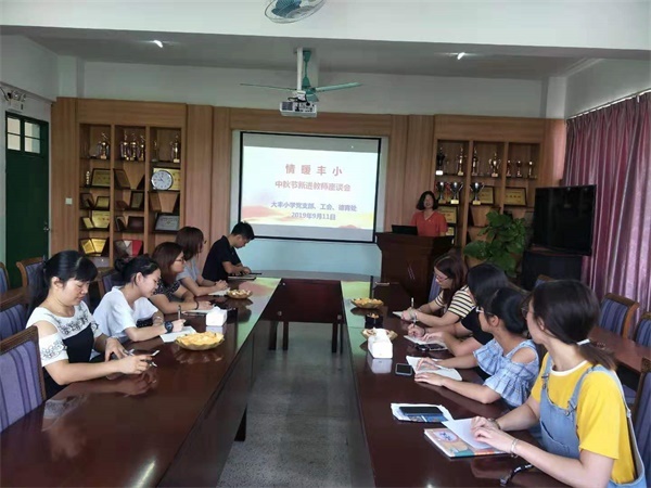 9月11日上午,蘇少麗校長則為新教師開展了中秋座談會。在座談會上,蘇校長充分肯定了新老師開學至今的工作,也讓新老師暢所欲言,表達自己在工作上遇到的問題,同時耐心地給予解說和提供幫助。最后蘇校長還暖心為新教師送上節日的祝福。當天下午,大豐小學還開展了以“愛國愛家,共話中秋,弘揚傳統”為主題的慶中秋主題班隊親子活動。教師和家長們認真布置教室,師生共話中秋,談中秋的來歷與傳說,聊中秋的習俗,介紹嫦娥奔月的故事。學生感受著經典文化的博大精深,激發了自身的愛國情懷。活動中學生們還品嘗著自己帶來的中秋食品,在品嘗中加深了對傳統節日文化的了解。