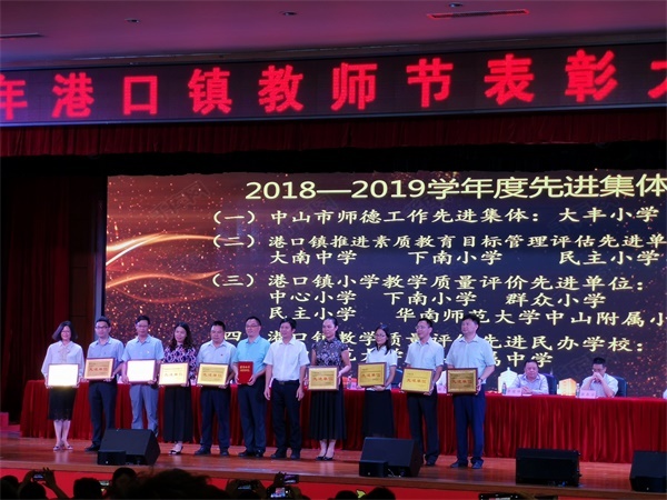 為慶祝新中國七十華誕和第35個教師節,9月9日下午,港口鎮教師節表彰大會在華師中山附屬小學禮堂隆重舉行。大會表彰了港口鎮教育系統2018-2019學年度市、鎮8個先進集體和268名先進個人。