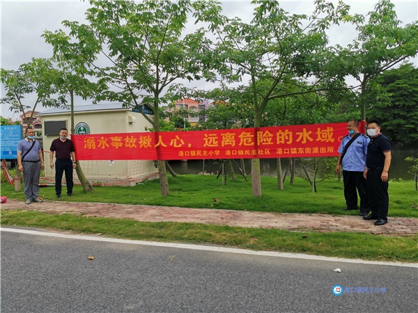 隨著氣溫迅速回升,學生戶外活動增多,每年夏季學生溺水事故頻發,令人痛心。為進一步推進平安校園建設,防止悲劇發生,切實保障學生安全,避免溺水事故發生,2020年5月13日上午,港口鎮民主小學、民主社區、東街派出所、民主小學家委會召開聯席會議,明確各部門的責任,確立了“聯防、聯動、聯治”治理機制。
