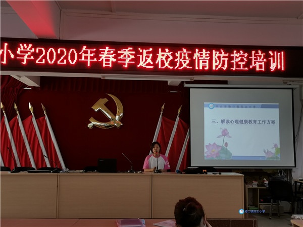 隨后,民主小學(xué)大隊(duì)輔導(dǎo)員余麗苑老師解讀了《港口鎮(zhèn)民主小學(xué)2020年春季學(xué)期師生心理健康教育工作方案》 。德育主任桂玉盛宣讀了《中山市疫情防控期返校后教師學(xué)生家長(zhǎng)一日常規(guī)指引》 ,傳達(dá)文件精神和要求。緊接著桂主任結(jié)合學(xué)校教師拍攝的《港口鎮(zhèn)民主小學(xué)疫情防控之學(xué)生返校模擬演練培訓(xùn)》視頻,對(duì)全面返校復(fù)學(xué)后的入校把控、校內(nèi)突發(fā)應(yīng)急,進(jìn)行了具體的要求和安排,確保學(xué)校疫情防控工作有序推進(jìn)。