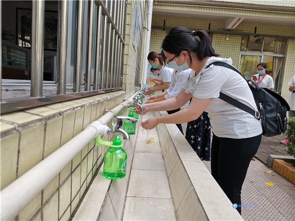 實(shí)踐演練環(huán)節(jié),李小健校長(zhǎng)帶領(lǐng)老師們進(jìn)行了返校疫情防控流程的演習(xí)。本次演習(xí)包括入校監(jiān)測(cè),教室上課,午間就餐、休息,教室消殺等場(chǎng)景。整個(gè)過(guò)程完整模擬了疫情防控期間學(xué)生返校后的日常檢測(cè)及防護(hù)流程。