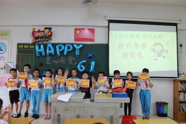 下午,首先進行的是“自主管理 自主發(fā)展”晉升爭章頒獎禮。各班班主任為獲獎的同學進行頒獎。講臺上領(lǐng)獎的同學露出了自豪的笑容,臺下的同學也在暗暗地下定決心——我下次也要努力爭章!