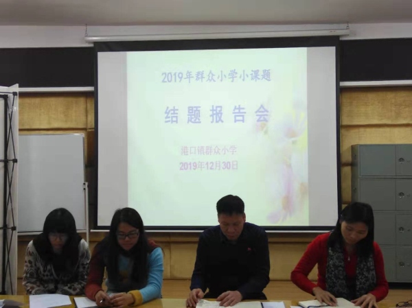 2019年12月30日,港口鎮(zhèn)群眾小學(xué)舉行了小課題結(jié)題報(bào)告會(huì)。此次會(huì)議與會(huì)成員有學(xué)校梁銓華校長、科研管理組成員及各課題組成員,由學(xué)校蘇小蓉副校長主持。