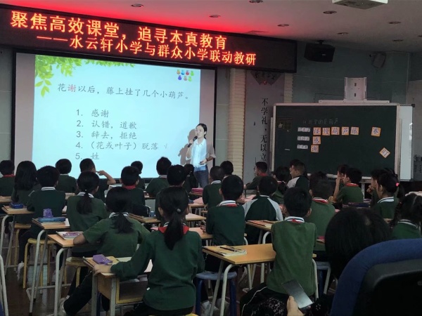 為進一步促進課程改革的深入發展,提高學校語文教師教育教學水平,促進教師的專業化發展,11月7日下午,港口鎮群眾小學與東區水云軒小學進行了主題為“聚焦高效課堂,追尋本真教育”的教學聯誼活動。群眾小學語文科組共10位教師前往水云軒小學學習。