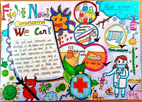為了進(jìn)一步推進(jìn)英語(yǔ)教學(xué),加強(qiáng)防范疫情宣傳力度,幫助學(xué)生進(jìn)一步了解防疫知識(shí),鼓勵(lì)學(xué)生收集相關(guān)的英語(yǔ)資料,積累英語(yǔ)知識(shí),提高英語(yǔ)素養(yǎng),激發(fā)學(xué)生對(duì)英語(yǔ)學(xué)科的學(xué)習(xí)興趣,4月9日至15日,石特小學(xué)舉行了英語(yǔ)抗疫手抄報(bào)制作比賽。