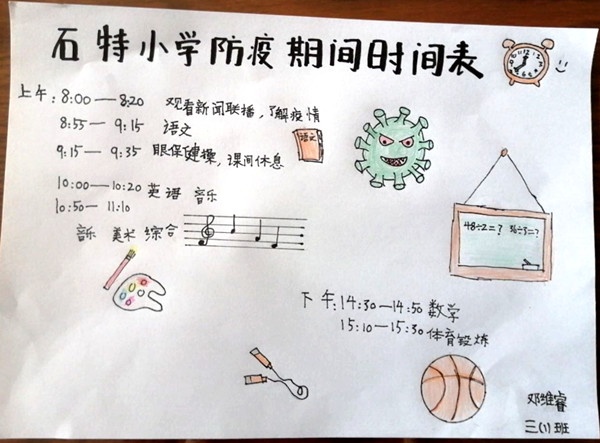 3月2日當天,同學們認真地端坐在書桌前,認真地觀看微課視頻,積極思考,勤做筆記。在互動環節,老師們為同學們答疑解惑,批改作業,做精準及時的指導,大大提升了他們的學習效率。除了學科知識的教學,學校還十分重視健康教育。老師們不僅積極普及防“疫”知識,而且不斷鼓勵同學們進行體育鍛煉和參與家務勞動,用實際行動抗擊疫情。學校更是開設了豐富多彩的拓展課程,包括音樂鑒賞、創意美術等;同學們可以根據自己的興趣愛好自行選擇。為了讓自己的學習更有效,不少同學還精心制定了自己的在線學習計劃,讓“居家學習”更加充實、有意義。