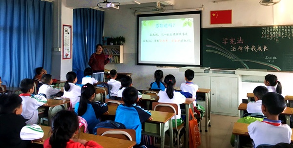 接著,各班開展了“法律伴我成長”的主題班會。班會課上,同學們積極參與,明白了憲法、憲法日的來龍去脈,了解了我國法治的變遷、學法守法的意義以及發生在學生周邊的法治故事。