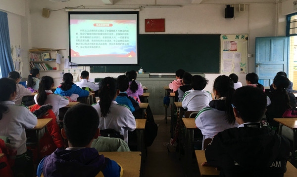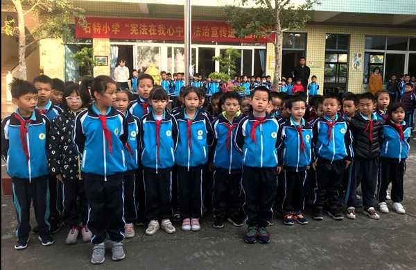 憲法宣傳走進校園,石特小學以多種形式開展憲法宣傳教育活動,將憲法有機融入升旗儀式、主題班會、晨讀活動。