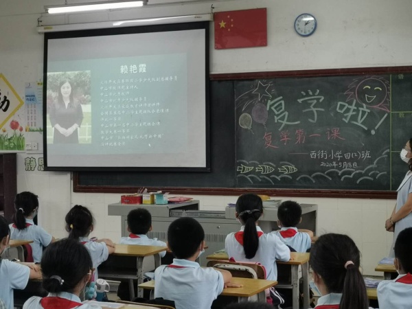 最后,全體師生觀看了“天使歸來(lái),英雄開(kāi)講”為主題“復(fù)學(xué)第一課”課程。視頻中賴?yán)蠋煾瑢W(xué)們分享了疫情期間中山援鄂醫(yī)療隊(duì)的影像資料,并向同學(xué)們?cè)敿?xì)介紹了醫(yī)療隊(duì)隊(duì)員們?cè)诤狈脚撫t(yī)院中工作的點(diǎn)點(diǎn)滴滴,呼吁同學(xué)們學(xué)習(xí)舍己為人,無(wú)私無(wú)畏的優(yōu)秀品質(zhì)。同時(shí),陳智偉醫(yī)生和魏翠云醫(yī)生也來(lái)到課堂上,為大家分享了在抗疫過(guò)程中發(fā)生的故事。緊接著,班主任與學(xué)生共同觀看了心理健康微課——我的心情我做主,幫助學(xué)生努力調(diào)適心情,盡快適應(yīng)校園生活。最后,學(xué)習(xí)學(xué)生返校一日常規(guī),重點(diǎn)規(guī)劃課間活動(dòng),午休午餐以及放學(xué)的常規(guī)要求,確保學(xué)生健康、安全返校。