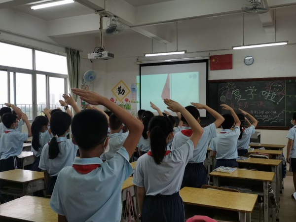 盼望著,盼望著, 5月18日,港口鎮(zhèn)西街小學(xué)終于迎來(lái)了四、五、六年級(jí)師生返校復(fù)學(xué)的日子,西街小學(xué)舉行四五六年級(jí)復(fù)學(xué)升旗儀式暨“開(kāi)學(xué)第一課”活動(dòng)。