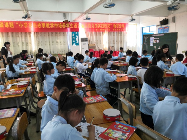 本次活動,西區昌平小學陳紅英主任和西街小學潘英華老師首先進行“課題匯報課”課堂展示。陳紅英主任執教的課題是三年級上冊Unit5 Happy Birthday中的語音課, 潘英華老師執教的課題是五年級上冊Unit6 Shopping for a School Party中的故事課。兩位老師經過前期精心準備,展示了各具匠心的兩節課。從兩位老師精彩的課堂,可以看出他們基本功扎實、對教學目標的定位準確。陳紅英主任的教態親切自然,課堂特色凸顯,用繪本故事創設語境教學單詞和發音,用拼讀法教學生拼讀單詞,有效地傳授給學生學習英語語音的方法。潘英華老師的課活動形式多樣,引導學生預測故事的發展、理解故事內容、復述故事、續編故事、跟錄音讀故事、表演故事等,培養了學生的觀察能力、思考能力、推測能力、自主學習能力、合作學習能力、創新能力和綜合語言運用能力。兩節觀摩課后,兩位教師結合自己的教學設計和課堂教學進行了教學反思。接著,兩間學校所有的聽課教師展開坦誠的交流研討活動。大家紛紛發表自己的看法,充分肯定了這兩位教師教學中的亮點,給予他們極大地鼓勵,同時也對課堂中存在的問題提出了自己中肯的見解。