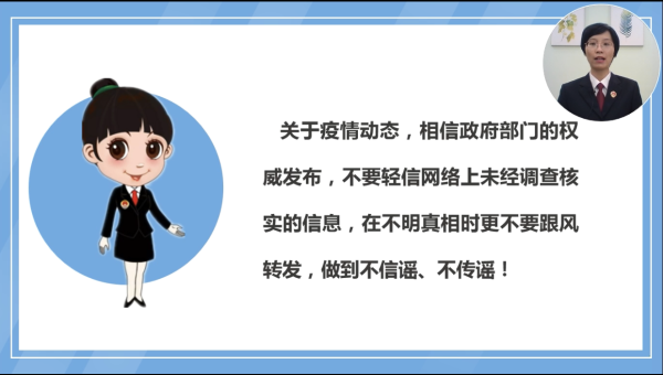 本次學習內容《依法抗疫,人人有責》分為三部分:第一部分:拒絕抗疫,法律難容;第二部分:依法上網,不傳謠言;第三部分:慧眼識珠、防范欺詐(防網絡詐騙性侵害)。學習視頻由中山市人民檢察院的檢察官洪敏樺主講,她通過網友性侵未成年人案;張某假借賣口罩詐騙案;蔡某冒充慈善組織募捐詐騙案;班級群里假冒班主任詐騙案;趙某編造、故意傳播虛假信息案;李某妨害傳染病防治案;鄧某妨害公務案等案例,讓家長和孩子們明白了什么是違法,什么是犯罪,要做一個學法、守法、用法、尊法的公民。