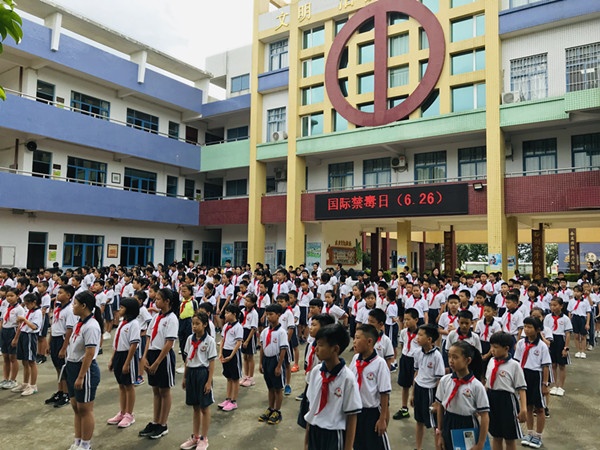 ——下南小學開展“國旗下講話禁毒宣傳倡議”活動?發布時間:2019-06-25 16:46 信息來源:本網站 瀏覽次數:31