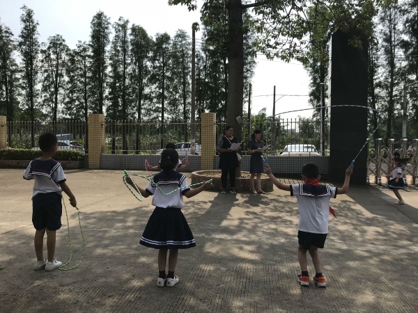 第二個測評項目是體育“六個動”。本校注重培養學生的鍛煉興趣、意志品質、合作精神和人際交往能力,使每個學生掌握1-2項終身受益的體育鍛煉項目,養成良好的體育鍛煉習慣和健康生活方式。學校根據每個年級學生的身體素質,選定了六項體育運動項目,如跳繩、踢毽、乒乓球、羽毛球、籃球、足球等。各個班級有序地來到操場上,在陽光的沐浴下積極地進行體育運動,在操場上盡情揮灑汗水,展示著各自的體育技能。
