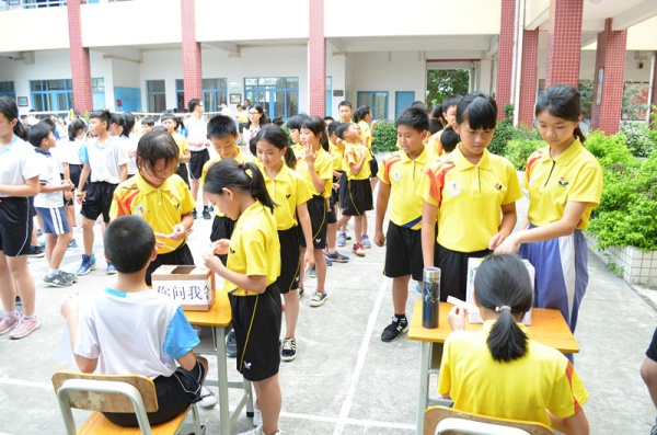 活動(dòng)主要由學(xué)校的語文老師負(fù)責(zé),其他老師協(xié)助舉辦。圍繞著“課外閱讀”這一大主題,活動(dòng)采取了“班級(jí)內(nèi)抽題回答”和“自由猜燈謎”的形式來進(jìn)行。各個(gè)年級(jí)在指定的位置設(shè)置攤位,該年級(jí)的語文老師根據(jù)本學(xué)期的推薦閱讀的十本書目,從書籍中抽取知識(shí)點(diǎn)設(shè)計(jì)選擇題、判斷題、選擇題、簡答題等,學(xué)生抽題作答,由此獲得相應(yīng)的獎(jiǎng)?wù)隆3酥猓n外書籍中的知識(shí)點(diǎn)還以“猜燈謎”的形式呈現(xiàn)出來,懸掛在學(xué)校大堂中央,學(xué)生有選擇性地取下題目進(jìn)行回答,獲取獎(jiǎng)?wù)隆?/p>