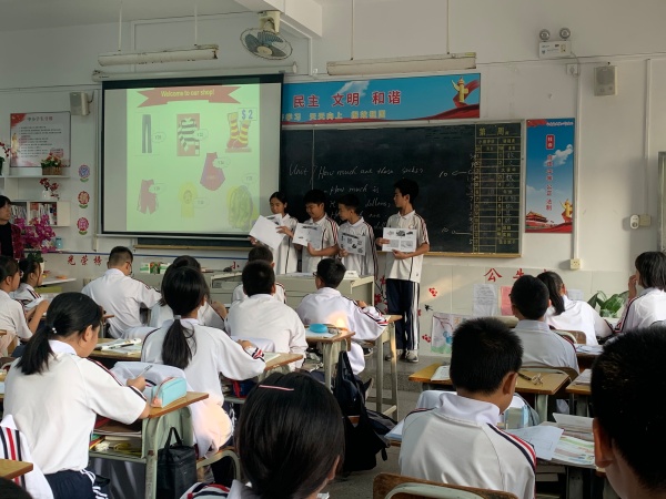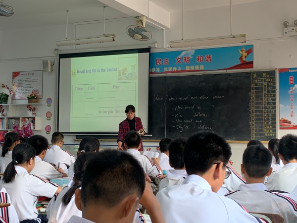第二節課由初一英語備課組的章翠蘭老師執教七年級上冊unit7第一課時聽說課。展示課圍繞購物的話題,設計主題內容鮮明、聽說結合、聽說循環、關注語境、語義和語用,聯系生活實際,促進學生自主表達。