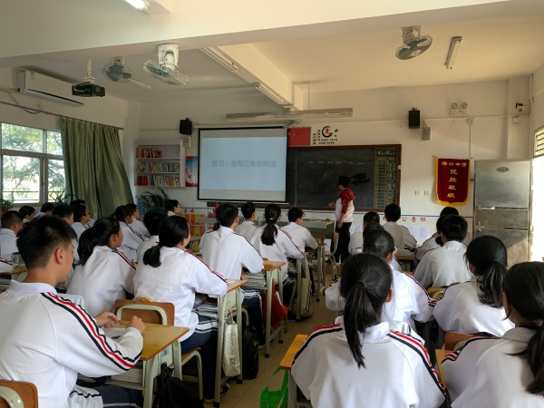 第一節課由初二數學備課組的楊依蘭老師執教“全等三角形的判定”。本節課楊依蘭老師通過一個例題,鼓勵學生從不同方法入手證明兩個三角形的全等。學生在活動過程中既有獨立思考,也有小組合作討論。討論結束之后,再由個人或者小組上臺口頭展示解題過程,圍繞著口頭展示的三個標準----準確度、流暢度和邏輯來評價學生,不僅培養了學生邏輯思維能力還鍛煉了他們的口頭表達能力。