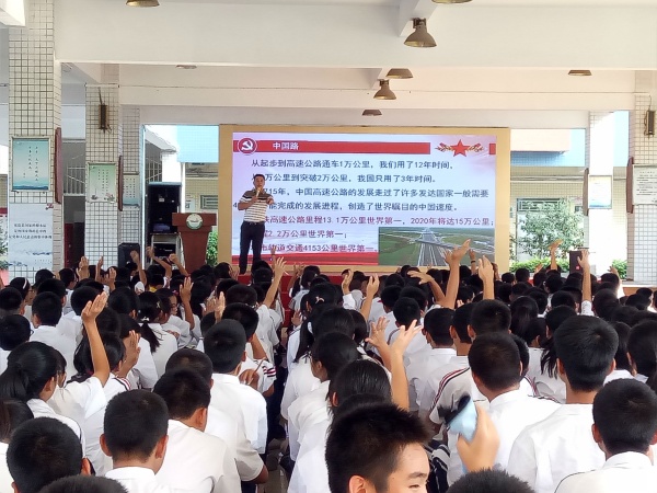 中華人民共和國成立以來的70年,是不斷創(chuàng)造偉大奇跡、徹底改變中華民族前途命運的70年。管書記從中國的“舊四大發(fā)明”——指南針、造紙術(shù)、火藥、印刷術(shù),講到如今的“新四大發(fā)明”——高鐵、網(wǎng)購、移動支付和共享單車,與師生互動,一起談論如今中國社會科技進步帶來的巨大便利,引起了大家的興趣,活躍了現(xiàn)場氛圍。中國網(wǎng)、中國車、中國路、中國飛機、中國橋、中國衛(wèi)星,這一樣樣的“中國制造”,令現(xiàn)場師生為之震撼,也觸動了學生們要努力學習,與祖國一同進步,為祖國的未來增添光彩的決心。