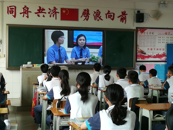 此次活動由中山市人民檢察院、中山市第一和二市區檢察院主辦,由中山網網絡平臺開展直播,活動的形式采用現場直播進行。學校組織學生在本班進行觀看直播,并由各班的班主任有序組織。直播活動內容主要分為三個部分,第一部分是線上走進檢查機關,第二部分是檢察官與中學師生線上交流,第三部分是法律知識普及(如防性侵、校園欺凌)。