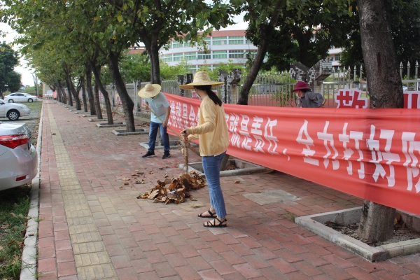 大南中學(xué)精心策劃組織教師們對(duì)校園外橫二線大橋西側(cè)衛(wèi)生、大南公交車站、大南派出所圍墻外側(cè)、學(xué)校牌坊外側(cè)路面、學(xué)校外停車場(chǎng)以及校內(nèi)約1000個(gè)平方米進(jìn)行徹底清潔,清除有色垃圾、雜草枯葉約2噸。