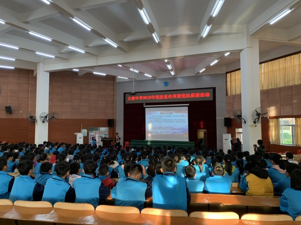 大南中學舉行2019年憲法宣傳周暨憲法晨讀活動發布時間:2019-12-06 10:37 信息來源:本網站 瀏覽次數:0