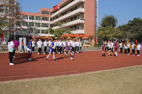 隨著張育文校長宣布 “自信、陽光”運動會正式開幕,儀仗隊、裁判員、各班運動員代表隊入場。二十個班級排著整齊的隊形,喊著激昂奮進的口號意氣風發的走來,各個班級將足球運動融入到本班富有特色的創意表演中,表演精彩不斷,亮點紛呈。有動感活潑的街舞,有韻味悠長的民族舞,有炫麗奪目的拉丁舞,還有足球與集體舞的融合表演,慶祝新中國七十周年的傘舞等。同學們用整齊精彩的表演、鏗鏘有力的動作展示著青春的活力,表達對學校、對祖國的美好祝愿,也將整個開幕式推向高潮。