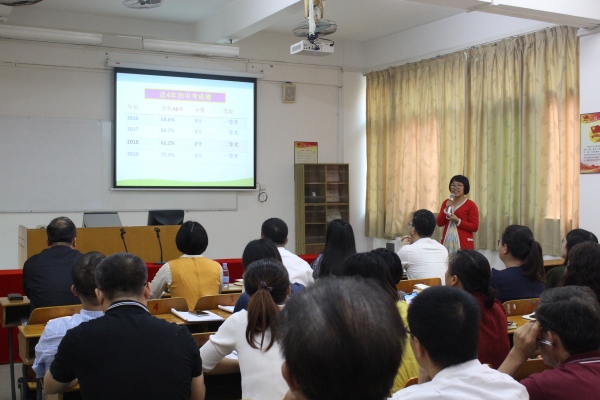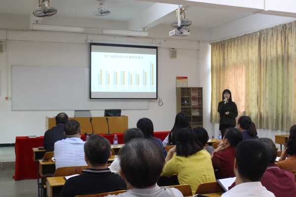 會上,學校教學處副主任許春娜對考試情況作了全面詳盡的分析,她運用具體的數據,對各學科、各班的AB率、ABC率和優生情況深入解析,使老師們從不同的層面和角度對學情有了清晰的了解。她還提出了當前存在問題的解決策略,號召全體教師不忘初心,合作拼搏,扎扎實實求質量。