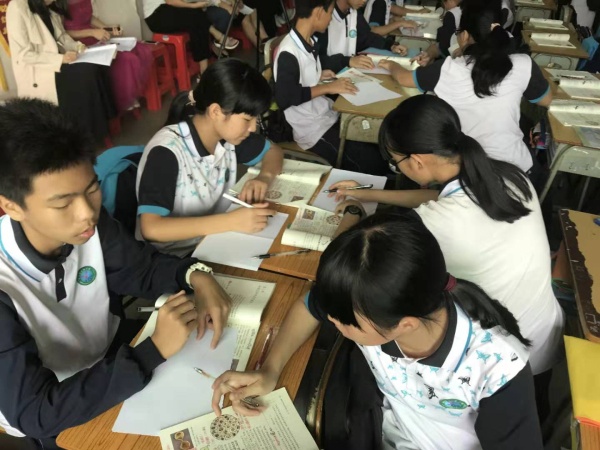 數學課上,潘曉賢老師精心設計的導學案,善用形象風趣的語言,把抽象難懂的數學知識講得趣味盎然,學生很快吸收知識重點。