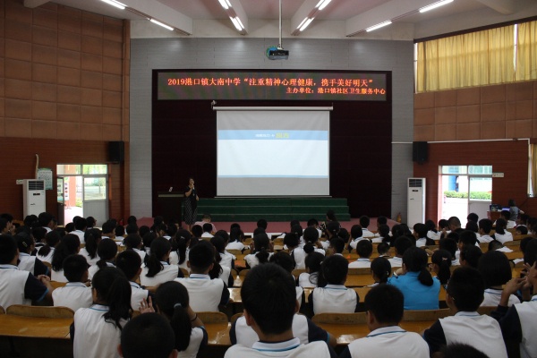 為進(jìn)一步加強(qiáng)學(xué)校心理健康教育工作,提高中學(xué)生心理健康水平,2019年9月25日下午,大南中學(xué)德育處聯(lián)合港口鎮(zhèn)社區(qū)衛(wèi)生服務(wù)中心在學(xué)校階梯教室組織開展了以“注重精神心理健康,攜手美好明天”為主題的心理健康教育講座。本次講座由國家二級(jí)人力資源管理師、國家二級(jí)心理咨詢師、國家箱庭(沙游)治療師鄭娜講師擔(dān)任主講,學(xué)校德育處張麗君主任和周智勇副主任出席了此次講座。