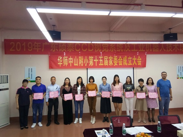為進一步了解人工智能發展水平,近距離感受信息技術對管理的推進作用,2019年11月8日下午,華師中山附小第十五屆家校合作委員會成立大會在“中山市碩泰智能制造有限公司”會議室舉行。梁婉儀校長、唐梅常務副校長、戴必俊副校長、王學坤校長助理等學校行政以及全體家委成員一行20人參加了活動。會議由戴必俊副校長主持。
