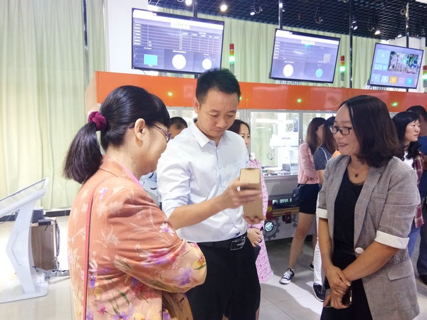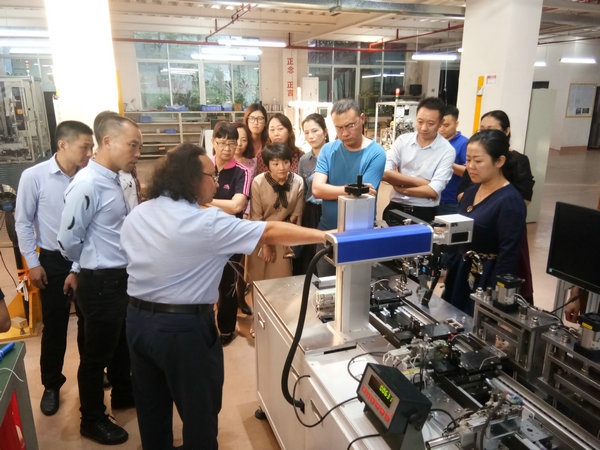 “精益碩謀,泰而奮進,智造卓越。”會前,參會代表們首先來到中山職業技術學院,參觀了碩泰智能在該學院設置的“工業4.0水杯生產線”,聆聽了工作人員的講解,現場觀看了水杯的生產過程。在碩泰機器手臂視覺導引系統的指揮下,十多分鐘內,機器人完成了水杯由組裝到包裝的全過程。參觀完畢,代表們來到碩泰智能公司總部,在負責人的引導下,參觀了“精密電子”生產車間,聆聽了負責人匯報的中美貿易戰對行業的影響以及應對措施。自動化的生產流程、精細化的企業管理、豐厚的企業文化給代表們留下了深刻的印象,感充分感受到了人工智能時代,技術革新的快捷,企業管理的精細。