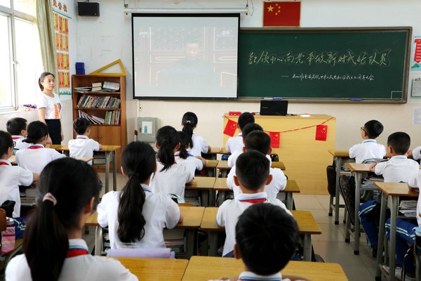 10月14日,少先隊大隊利用主題班隊會的時間,開展了各項主題活動:少先隊輔導員向隊員們講解紅領巾、少先隊標識的內涵,普及少先隊標志禮儀的規范,組織隊員唱好國歌、隊歌,唱響《我和我的祖國》等主旋律歌曲,學習歌曲產生創作的時代背景、代表象征的精神含義等;各中隊通過觀看視頻,認真學習和聆聽習總書記在慶祝中華人民共和國成立70周年大會上的重要講話,牢記習爺爺對少先隊員的期望和囑托;同時,各中隊還開展了“我和紅領巾的故事”分享會,分享自己與紅領巾的故事,將自己的小夢想融入與祖國發展的大追求中。