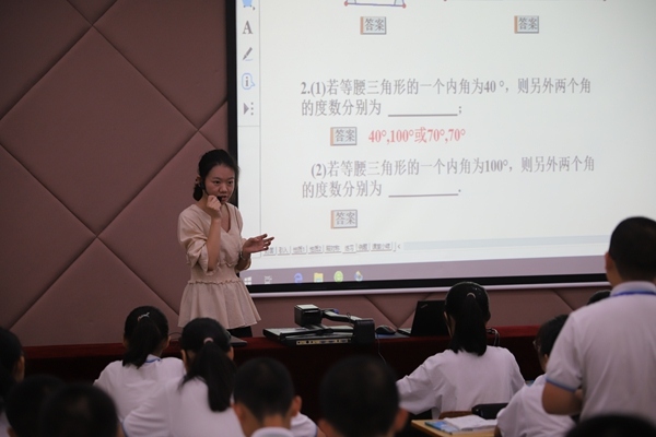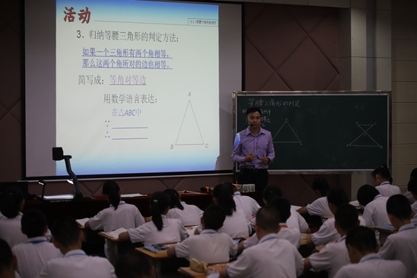 經(jīng)過前期的解題和說題比賽,共有5名選手晉級此次決賽。他們參賽的課題有《等腰三角形的性質(zhì)》和《等腰三角形的判定》。