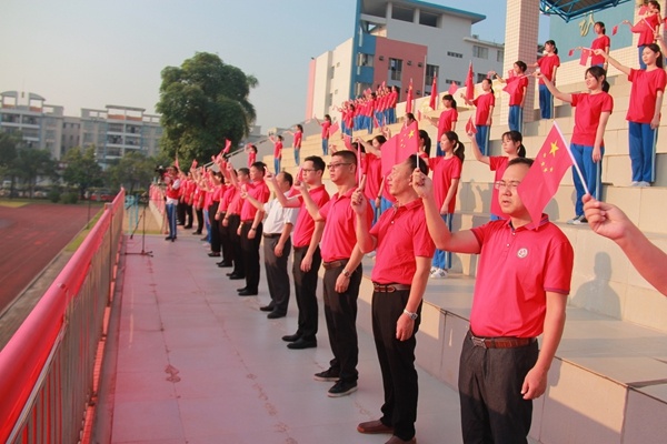 總校長助理、中學執行校長宋秀國代表學校以“沐浴新中國的陽光,助力新中國的夢想”為題致辭。他說,我是六十年代出生的,50年一路走來,我經歷過吃不飽,吃得飽,吃得好的階段;也親歷、親聞、親見了不少國家發展的高光時刻。他歷數了新中國在重要的節點上政治、經濟、科技、體育、基建、制造等行業上翻天覆地的變化及傲人的發展成就,勉勵同學們時刻不忘中華民族偉大復興的夢想,為把我國建成富強、民主、文明、和諧、美麗的社會主義現代化強國而奮進。