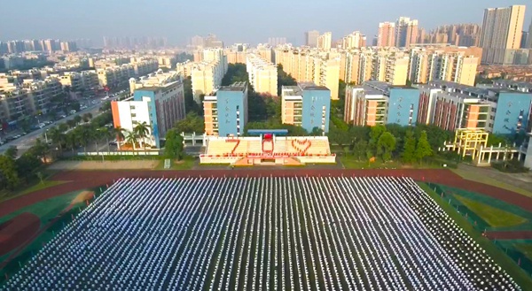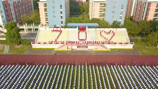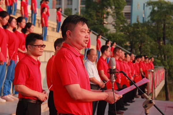 歡喜的人群,喜慶的笑臉,嘹亮的歌聲,紅色的海洋,成為中山華附校園里最靚麗的風景線。