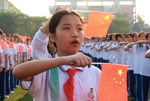 “祖國萬歲”!今天,中山華附7000多人從心底喊出了同一句話,喊出了對祖國的深情祝福;“我們都有一個家,名字叫中國”——唱出了中華兒女的自豪感;“中國,祝福你,你永遠在我心里;中國,祝福你,不用千言和萬語”唱出了6000多名師生對祖國的無限熱愛。