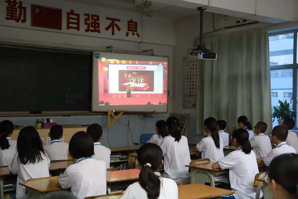 為培養(yǎng)和踐行社會主義核心價值觀,進一步加強未成年人思想道德法制建設(shè),創(chuàng)建更加美好的文明校園,提升中山華附中學生法律意識和自我保護能力了。6月27日下午3點,華附非畢業(yè)全體學生參加了由市教育和體育局舉辦的“犯罪預(yù)防與自我保護”為主題的中小學法制教育主題班會活動。活動以直播和錄播形式開展,其中,初一(5)班和初一(8)班同學在學校演播廳觀看了直播,其余班級在班級觀看了錄播。
