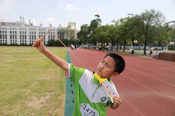 在一天的賽事里,各式各樣的飛機模型將華師中山附中的天空裝點得格外美麗,運動員們有的屏息凝視,手持遙控,細心操控,伴隨著馬達的轟鳴聲,模型飛機騰空而起,在藍天白云間穿梭往來,精彩綻放;有的高舉彈弓,拉開馬步,向著天空,開弓彈射,只聽嗖的一聲,彈射飛機像利箭一般,直沖云霄,在空中畫出一條美麗的弧線;有的手握遙控,左右擺動,控制著多軸飛行器在三根立柱間靈活閃現,起飛、加速、繞彎、留空、返航,一氣呵成,贏得了陣陣喝彩。天氣雖然炎熱,但運動員們個個精神抖擻,摩拳擦掌,躍躍欲試,盡情的享受著賽事帶來的歡樂,中山航模運動協會秘書長李勇燦說,“學生們自己拼接模型,自己放飛,對培養學生的科學興趣,感受比賽激情帶來的快樂非常有幫助,華附的場地是一流的,這也是中山市有史以來最大規模的航模錦標賽。”