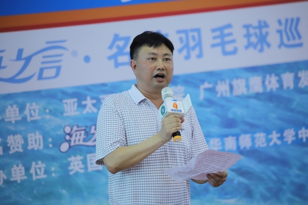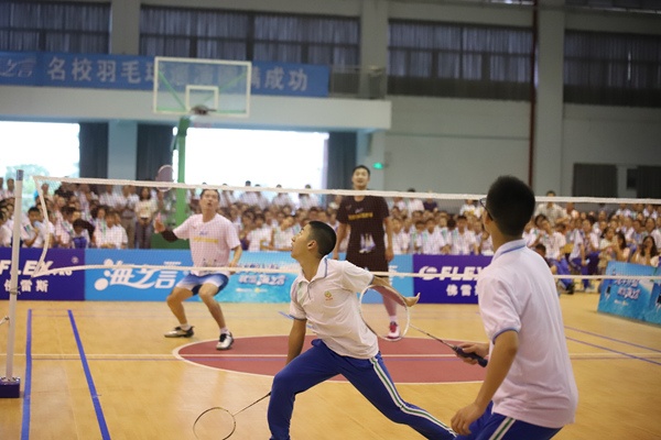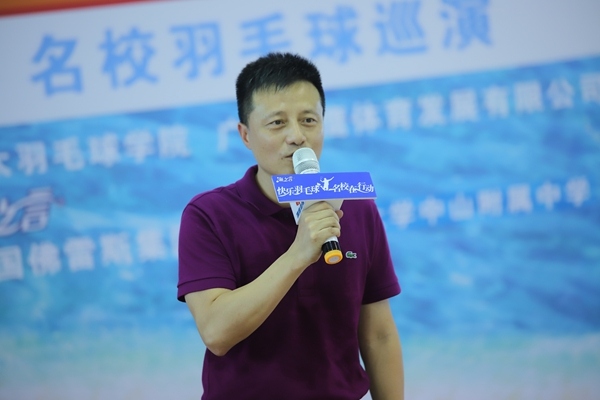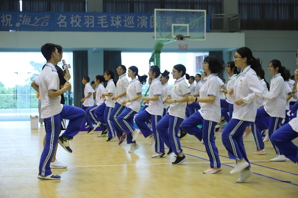 隨后,活動的主辦單位代表亞太羽毛球學院林海濤先生講話中指出,“快樂羽毛球 名校在行動”巡演活動,旨在邀請世界級羽毛球冠軍展示羽毛球運動的魅力精髓,激發、鼓勵學生對運動、對羽毛球的熱愛和向往。世界冠軍王睜茗也表示,希望通過本次活動,能促進同學們更多地接觸、了解羽毛球,強健體魄,健康快樂成長。