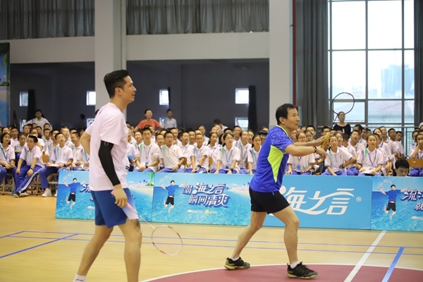 5月15日下午,廣東名校羽毛球巡演活動走進中山華附,羽壇名將、世青賽男單冠軍王睜茗為師生們帶來精彩的球技表演。中山大學附屬中學總校長、中大珠海分校校長朱子平,中山市家庭教育指導服務中心主任王曉君,中山華附總校長、中學校長劉詩雄,總校副校長、小學校長梁婉儀,總校副校長、中學副校長陳達生,中學常務副校長宋秀國等領導出席了活動?;顒赢斕?,校羽毛球館人聲鼎沸,精彩連連!